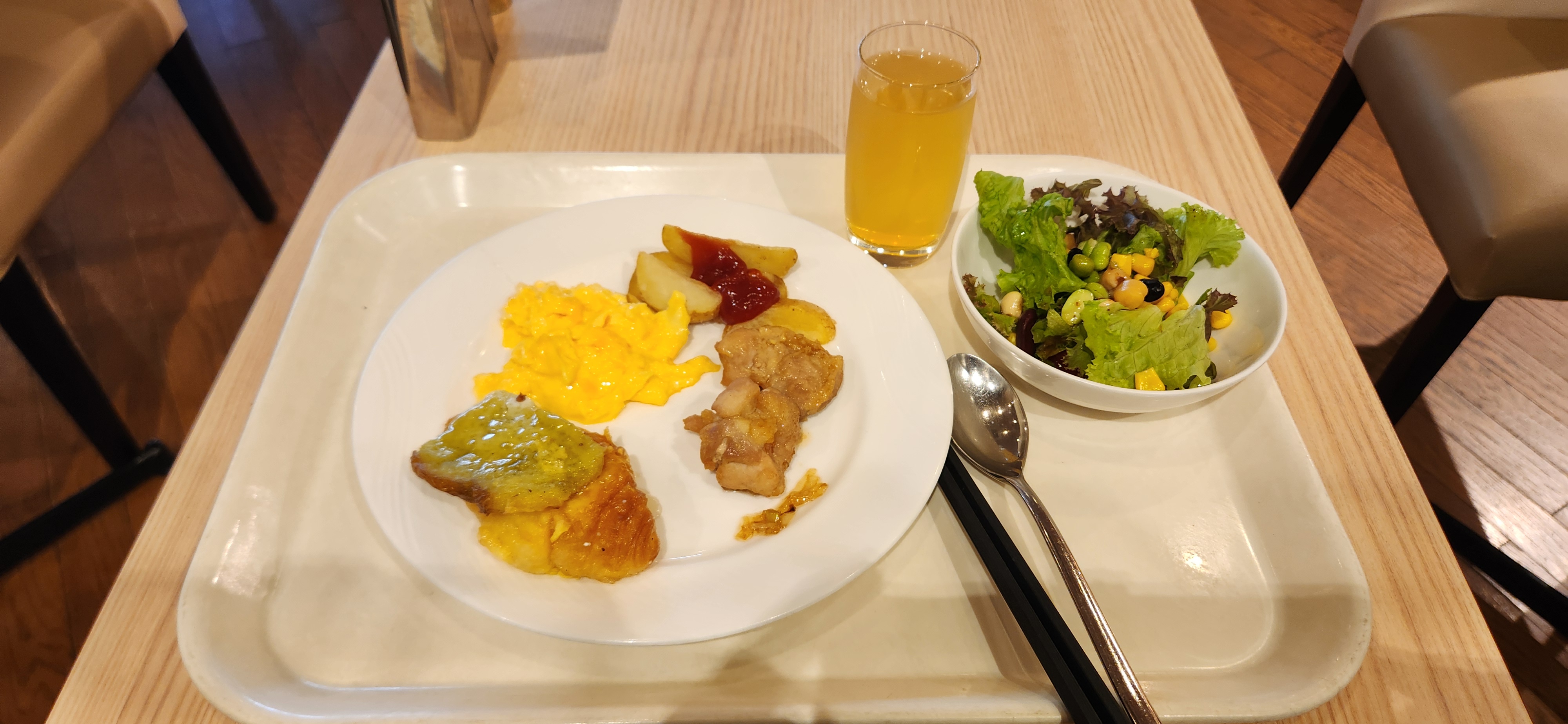 조식은 메뉴가 다양하게 제공되었고 골라먹을 수 있는 방식이었습니다. 저는 주로 샐러드와 스크램블드에그를 먹었죠.