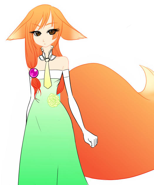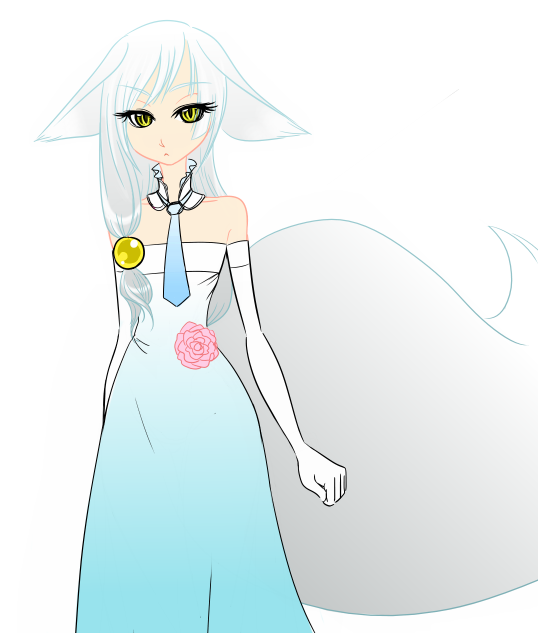 은색의 모발과 꼬리털, 그리고 흰색 장갑과 흰색과 푸른색의 투톤컬러 드레스, 금색의 여우구슬과 분홍색 코사지가 가장 균형이 잘 맞는다고 생각하고 있어요. 이게 처진귀 여우의 차분한 이미지와 잘 어울리는 고급감을 만들어내는 것 같아요. 4번의 채색이면 오빠가 지은 알로페아라는 이름이 정말 잘 어울려요.