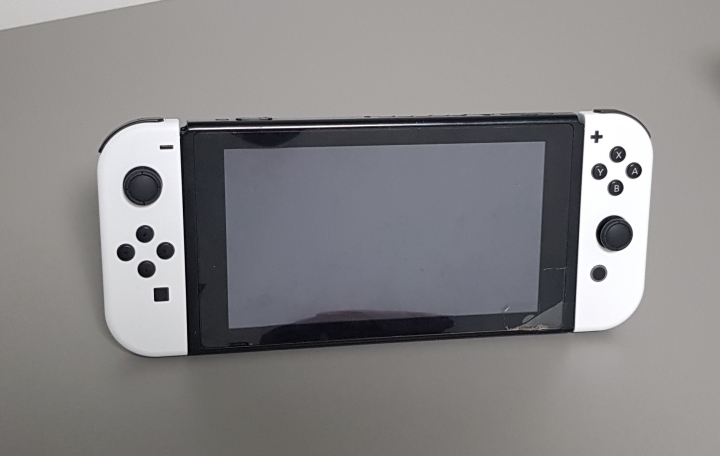 닌텐도 스위치 OLED 이미지 커스텀입니다. 겉모습은 2021년 발매된 개선사양인 OLED 모델 처럼 보이지만 실제로는 "이미지 커스텀" 이라는 별칭대로 2017년 발매된 구버전 모델 그대로 조이콘의 외장만 도색한 물건이네요.