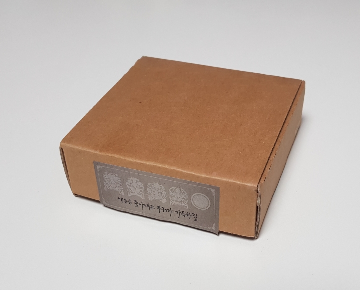 상자는 심볼 컬러인 청록색과 머리 장식을 이미지화한 심플한 디자인.