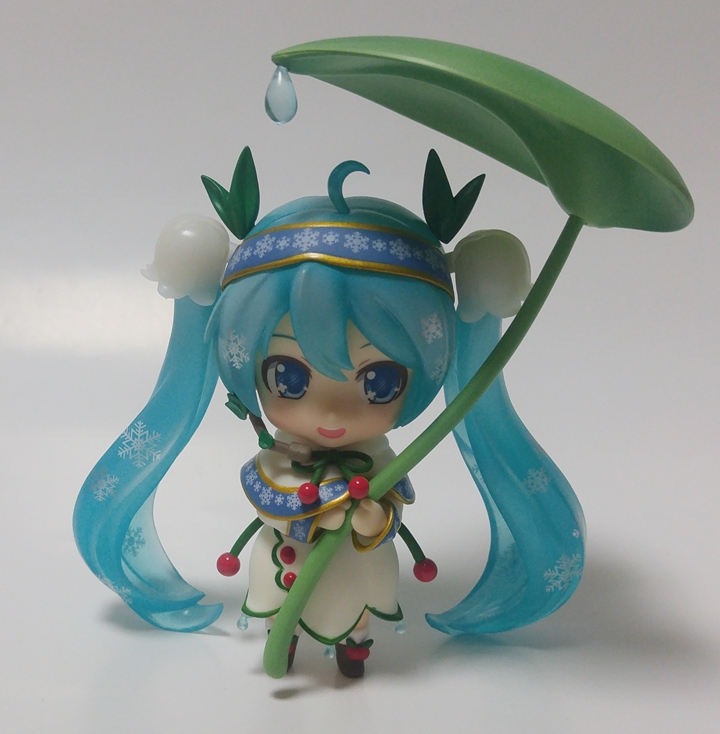 스노벨의 테마가?"홋카이도의 겨울을 이미지화한?식물"이고, 그런 테마를 위해 선택된?소재가 "은방울꽃"이었던 만큼 넨도 포멧으로 데포르메된 디자인은 그야말로 눈의 요정다운 모습. figma와 동일하게 사진의 '잎사귀 우산'이라던지 음기호 모양의 '은방울꽃 종', 은방울꽃을 따온 '은방울꽃 램프'가 소품으로 제공됩니다.
