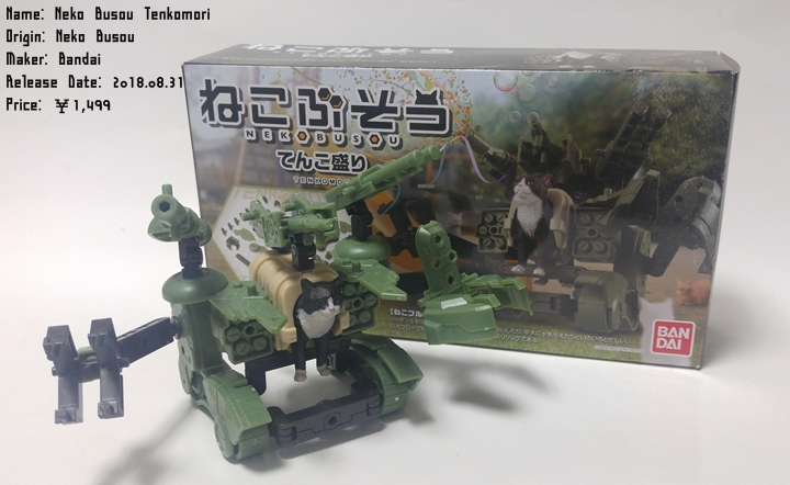 부소우라 불리우는 간단한 무장 파츠들과 고양이 피규어가 동봉되는 가벼운 손맛의 키트 입니다.?4개로 나누어지는 무장 파츠 부소우는 각기 다른 포즈와 체색의 고양이 피규어 및 이에 씌울 수 있는 재킷과 함께 4 세트로 나누어져서 개별 판매되는 것과, 고양이를 전용의 포즈와 체색의 것으로 하나만 제공하는 대신, 4개의 부소우를 모두 제공하는 합본 패키지 "텐코모리"가 있는데 제가 입수한 제품은 그중 텐코모리 쪽.