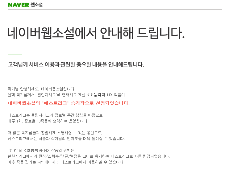 1. <초능력자 H>는 여기 말고도 여러 사이트에 연재하는 중인데, 그 중 한 곳에서 메일이 하나 왔습니다.