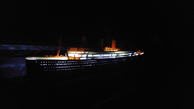 저 타이타닉 모형에 조명이 켜진 상태를 보니 실제 항해중인 여객선을 촬영했다고 믿어도 좋을 정도로 정교해요. 아무 지식이 없이 사진부터만 봤다면 그렇게 착각하더라도 의심스럽지가 않았을 거예요.