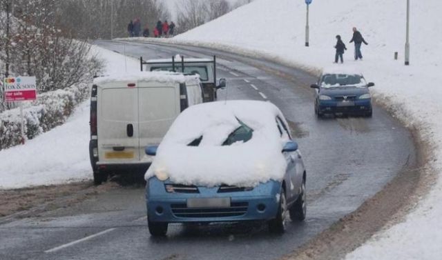창문에 쌓인 눈을 치우지 않고 운전을 하다니 대체 무슨 생각을 하는 건지 모르겠어요.