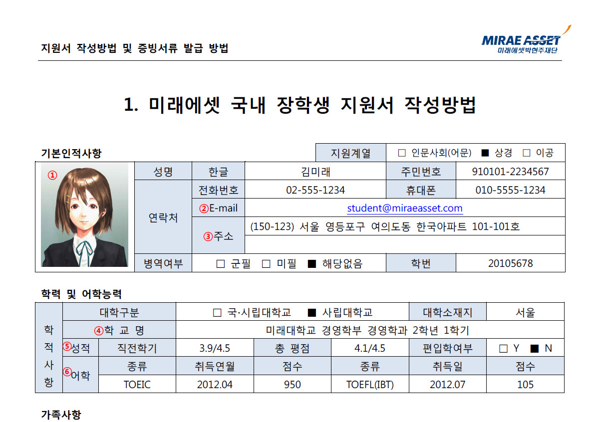 미래에셋쪽 장학금 작성서인 모양인데요, 아마 제가 학교에서 장학금 준다는 공지라도 보고 다운받은 모양이죠. 그리고 쿨하게 묵혀두고