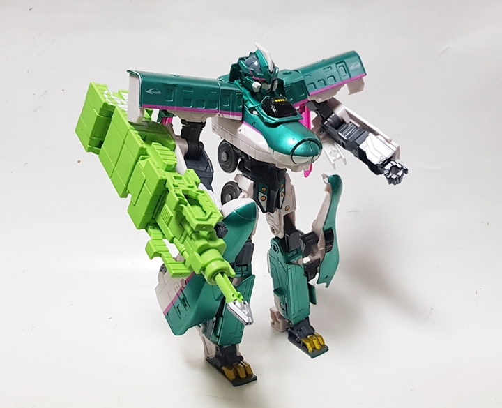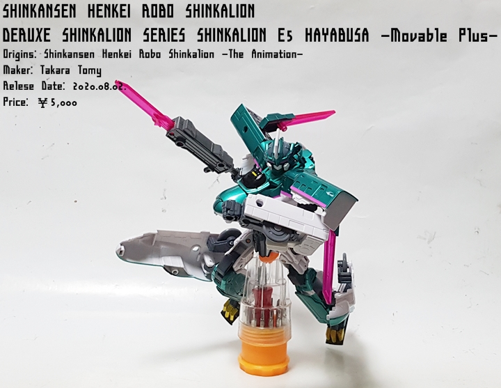 2017년에 발매된데다 주인공 기체이기도 해서 품귀 현상이 일어난 DXS01 신카리온 E5 하야부사의 재판 겸 리데코 상품이 되는 E5 하야부사 가동 플러스 입니다. 수식 명칭 그대로 허리와 고관절에 추가 관절이 늘어난 점이 이 제품의 세일즈 포인트로 이에 따라 구판에 비해 가격도 500엔 상승했네요.