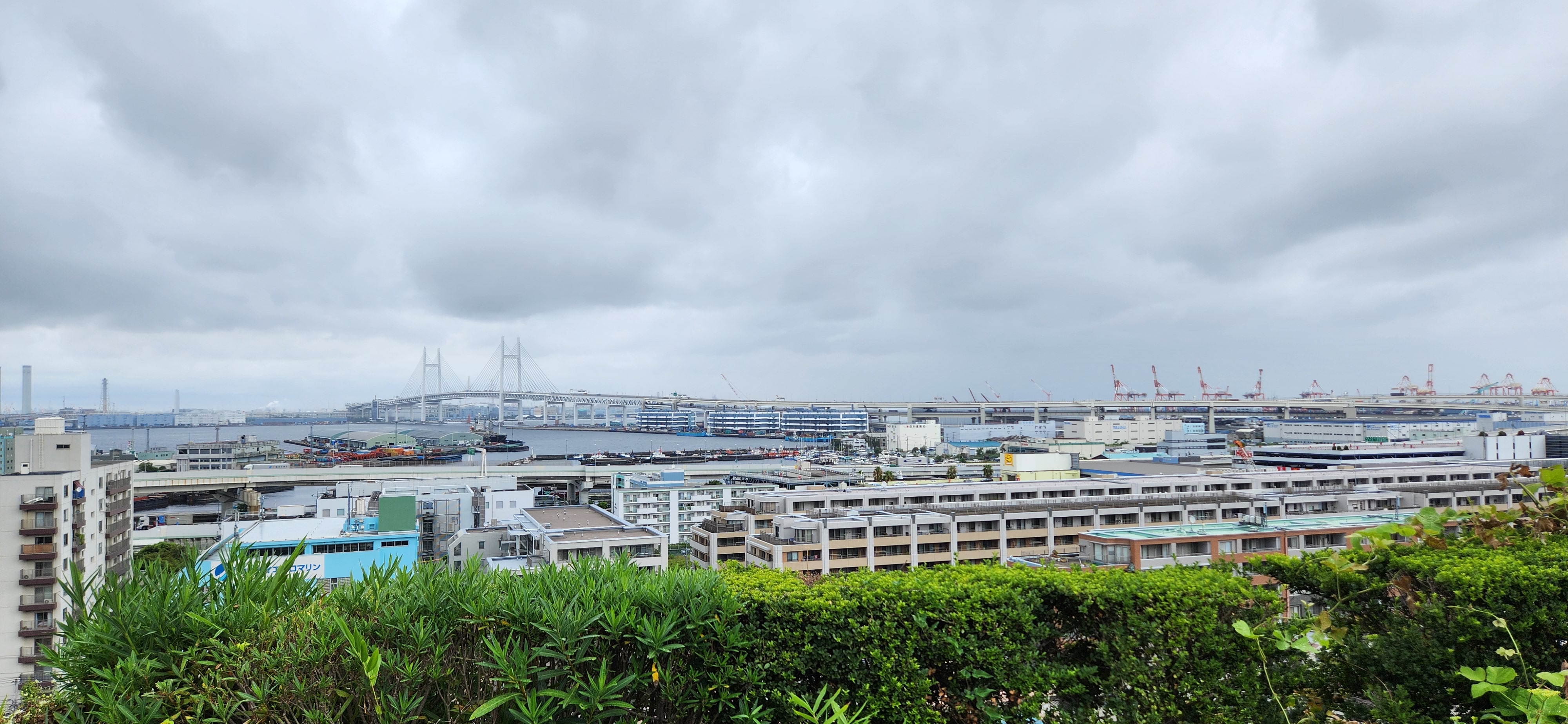 미나토노미에루오카공원 전망대에서 보는 요코하마입니다. 구름이 꽤 많이 꼈군요.