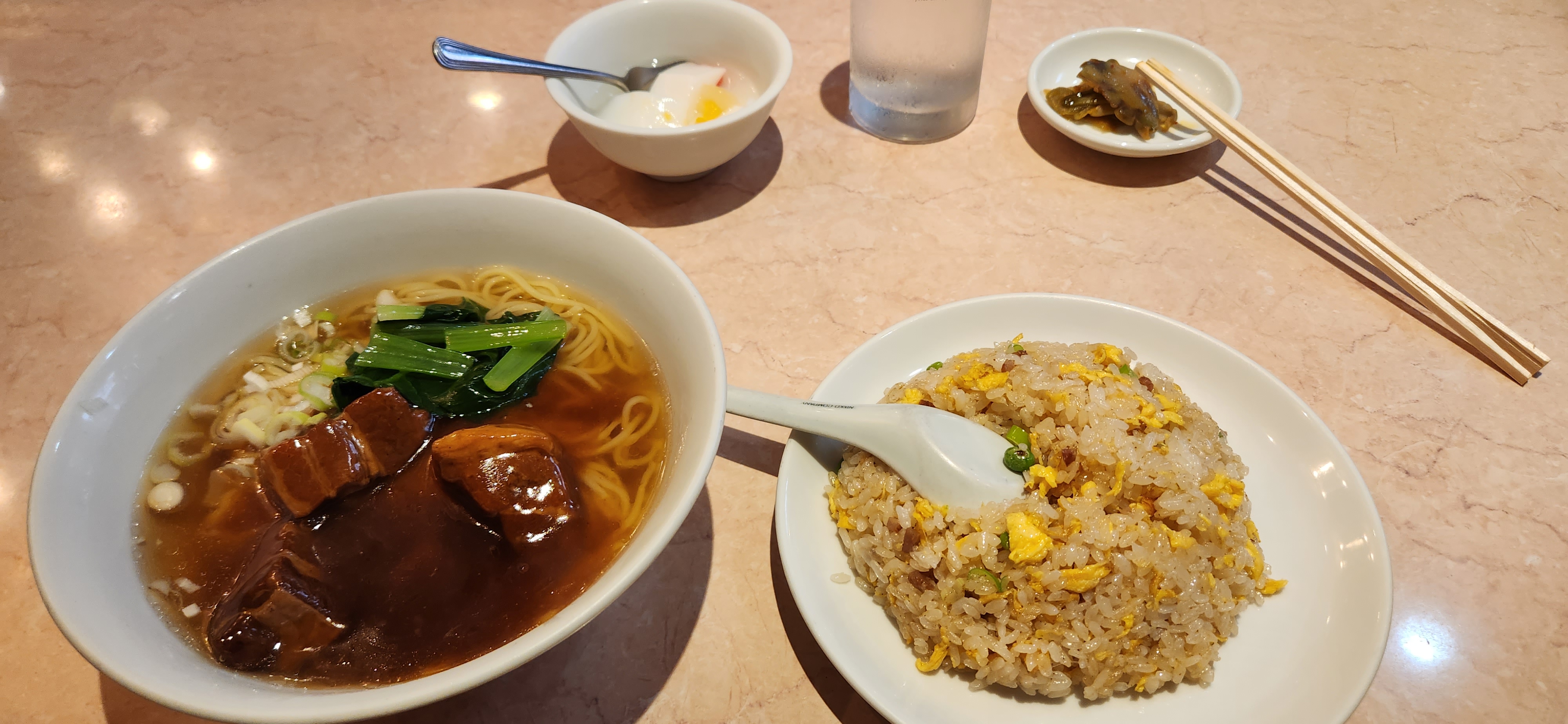 요코하마 차이나타운에서 먹은 볶음밥과 우육면. 후식으로 푸딩도 나옵니다. 맛은 꽤 좋았습니다. 저게 세트인데도 900엔입니다.