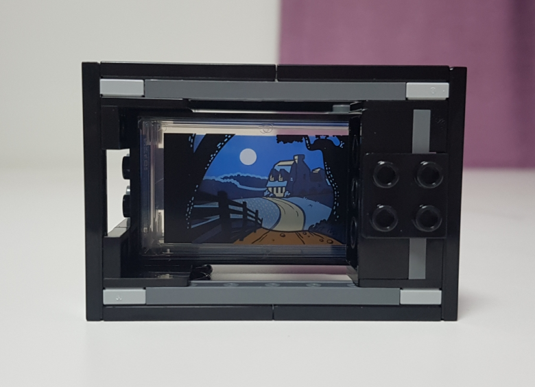 3장의 투명 플레이트는 각각 달이 뜬 밤하늘이 그려진 가장 안쪽층, 집이 그려진 중간층, 나무와 길이 그려진 가장 바깥층의 3층 구조로 이루어져 있습니다. 이 그림들은 일정 간격으로 떨어져 있어서 각도를 비틀면 각각의 그림들이 겹쳐지는 위치가 달라지며 그림이 실제로 움직이는듯한 모습을 보여주죠.