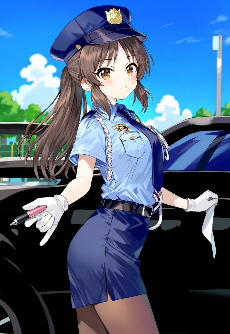 그 다음으로는 경찰관 복장. 역시 자세도 좋은 데다가, 같은 346 프로덕션의 캐릭터인 카타기리 사나에(片桐早苗)가 작고 날랜 페네크여우 같은 인상의 무투파 스타일의 전직 경찰관 출신 아이돌이라면 22세의 타치바나 아리스는 그보다는 다소 큰 키에 침착한 상황판단력으로 상황을 정리하는 야전지휘관 포지션의 인물이 적합할 듯합니다.