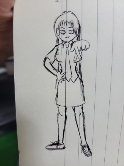 비교를 위한 병렬. 이제 보니 손가락을 크로스하고 있는 왼손이 너무 크게 그려졌나 싶기도 하네요. 아무리 앞으로 내밀었다지만 저 정도는 아닐 듯한데... 채색은 뭐, 그냥 그러려니 하고 있습니다.