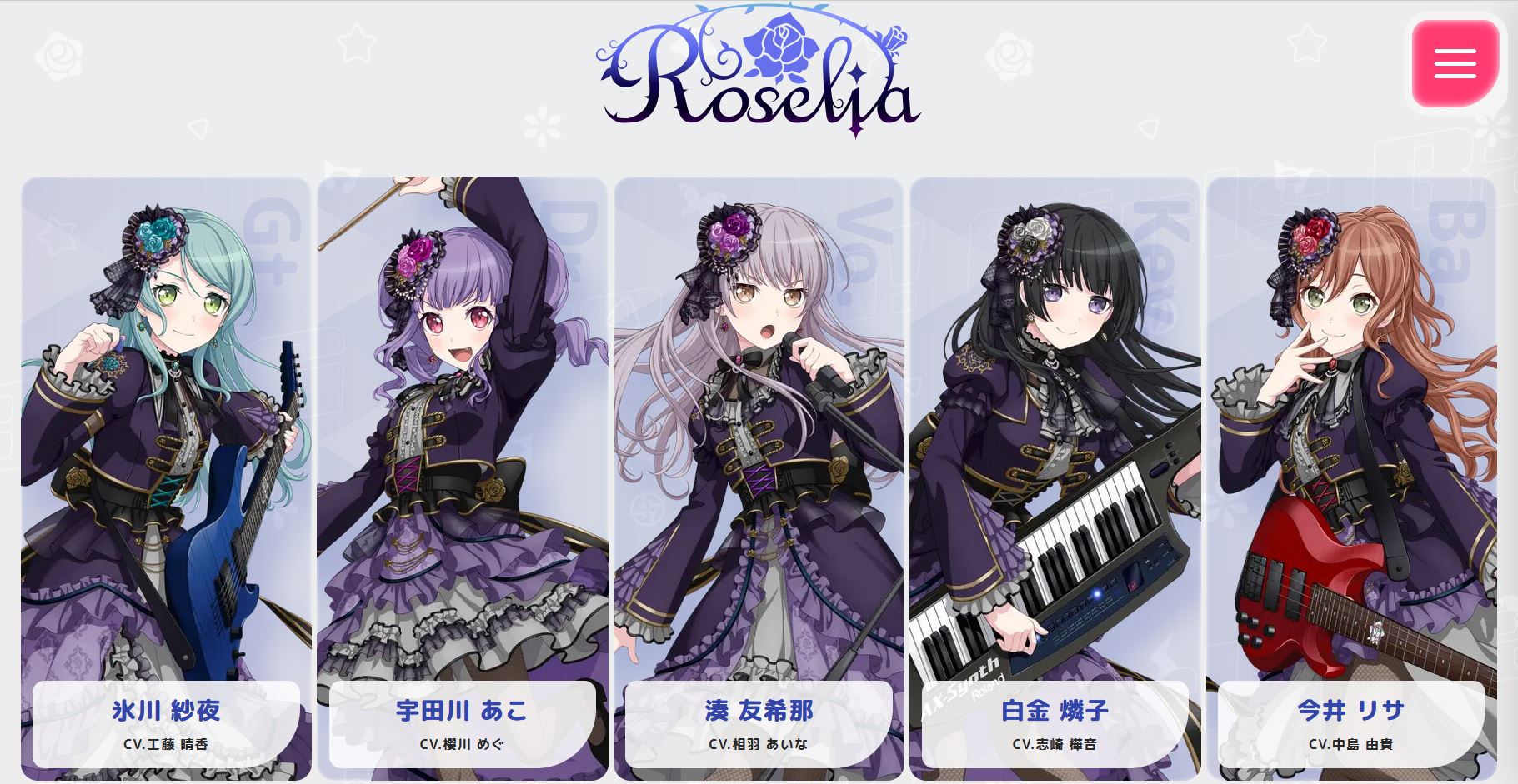 Roselia, BanG Dream! 공식 웹사이트, 일본어