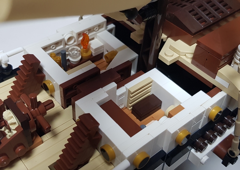 방향타를 위해 레고에서 가장 작은 2x2 크기의 기어박스를 조타실에 어떻게든 집어넣어 구현했다는 해설이 매뉴얼에 적혀있습니다.