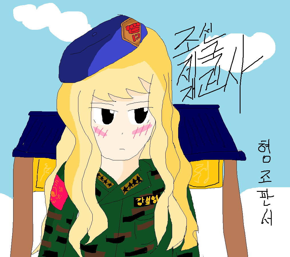 원래는 그냥 낙서로 그린건데 갑자기 군복입은 여자애로 그리고 싶어져서 저렇게 그렸습니다. 그냥 낙서라서 그런지 오른쪽 머리카락이라던가 군복에 머리색이 염색되어있는등(...) 꼴이 말이 아니군요. 그리고 형조판서는 사실 저 여자애가 형조판서인게 아니라 나오라고 부르는겁니다. 말풍선이 없어서 착각할 수 있겠네요. 저 아이는 병조판서.