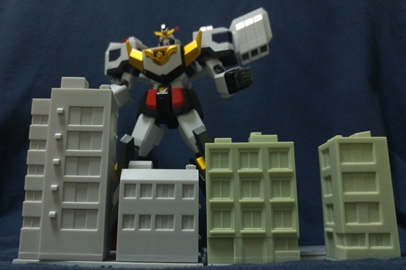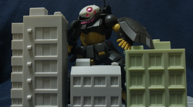 마크로스 시리즈 같은 작품들 처럼 배경이 우주가 아니라면 대부분 시가지가 주 무대이자 전장이기 때문에 그런 시가지에서의 연출에 특화된 이 제품은 당연히 잘 어울릴 수밖에. 건물의 기본적인 덩치와 부피가 있다보니 메카닉 계열 캐릭터를 세워둬도 묻히지 않습니다. 복수의 세트를 갖고있다면 더 다양한 연출을 해보고 싶은데 당장은 한 세트 뿐이라 딱히 할 것이 없다는게 흠.