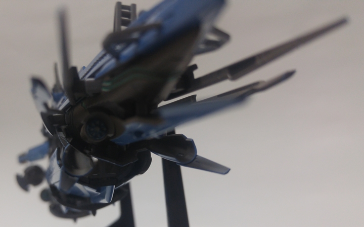 각부가 상하좌우로 쩍 벌어지면서 초중력포의 포구가 노출된 모습으로 변형이 상당히 고된 만큼(...) 그와 대비되게 스타일이나 디테일 등은 상당히 좋습니다. 중앙의 포구를 중심으로 4개의 유닛이 클리어 파츠로 지지되고 있으며, 각각의 포구는 메탈릭 그린으로 채색. 하부의 희미한 마크는 이오나 고유의 엠블렘.
