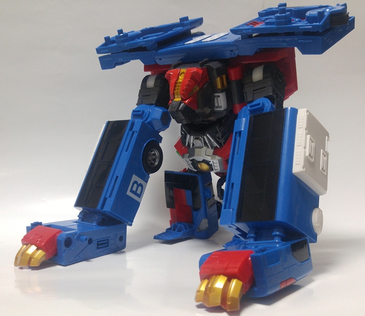 최신의 변신 로봇들이 대체로 슬림하면서도 날렵한 인상인데 반해 이쪽은 베이스 차종이 준대형 시내버스라는 점도 있고 8090 세대에 유행하던 거대로봇같이 강고하면서도 듬직한 인상. 그럼에도 의외로 최신의 트렌드는 제대로 따르고 있어서 베이스 차종의 한계를 감안하면 상당히 세련되고 준수한 프로포션이 일품.
