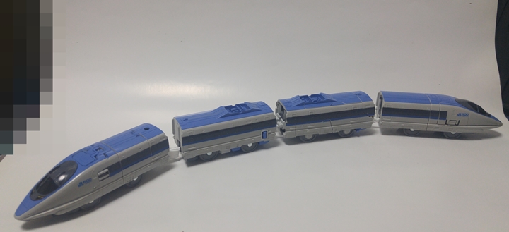 전장 55cm로 증차된 객차의 길이만큼 다른 편성보다 더?길지만 역으로 다른 DXS 사양은 객차의 길이가 늘어나 있지만 이쪽은 구판과 똑같은 만큼 중간 객차 하나를 빼서 같은 3량 편성으로 맞출 경우 다른 DXS 시리즈보다 다소 짧아집니다. 구판은 콕핏이 클리어로 되어 내부 운전석이 투과되는 사양이었고, 헤드파츠도 그렇지만?DXS 사양은 내부가 투과되지 않을 정도로 어두운 클리어 블랙으로 변경되어 있습니다. 자칫 호불호가 갈릴만한 요소이지만, 개인적으로는 보다 실차에 가까운 외형인듯 싶어서 그럭저럭 만족.