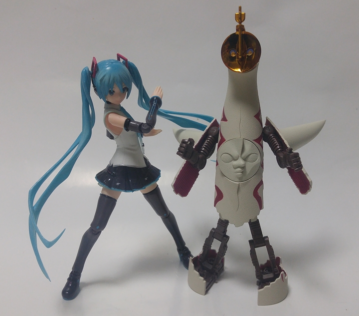 하츠네 미쿠와 함께하기도 하고, 때로는 하츠네 미쿠와 대립하기도 하는 여러 다른 완구들을 보니 여러 상상이 납니다. 그러고 보니 새턴 5형 로켓의 최상단부에 있는 미스 모노크롬이 의외로 눈에 띄기도 합니다. 역시 새턴 5형 로켓의 색조를 축소해 놓았다는 느낌이 들어서 그런 것일지도 모르겠습니다.