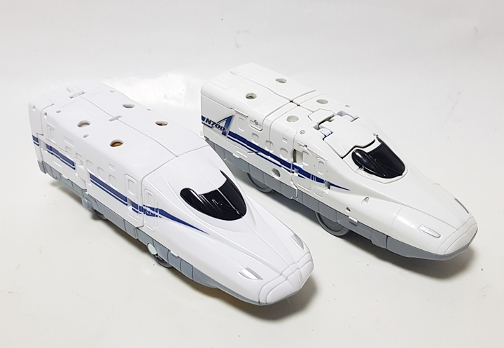 전광초특급 히카리안이나 용자특급 마이트가인 처럼, 신칸센 변형 로봇은 대부분 노조미 클래스의 차량이 주인공 기체로 나오다보니 개인적으로도 그쪽 인상이 더 강하게 남아 친숙하게 느껴지네요. N700계 시리즈는 자체적으로 3가지 변형 패턴을 갖추고 있고 디자인도 친숙한 노조미 클래스의 하얀색/파란색 색조합이다보니 개인적으로도 참 마음에 들었네요.