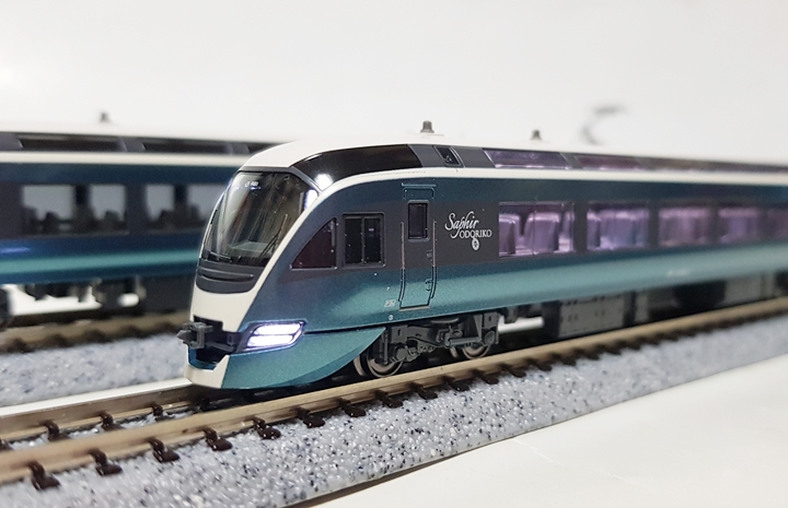 맨눈으로는 거의 보이지도 않는 행선지 표시판은 [1(차번)] 특급 사피르 오도리코 |지정석 이즈큐시모다로 실차와 같은 사양으로 재현.